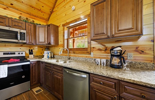 after a day of exploring the great smoky mountain, gather around the great room’s fireplace and appreciate this comfy space to rest while drinking your favorite ice cold beverage!