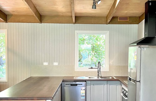 this 70s house has been fully renovated to bring the comfort of modern living while reserving all the characters of the original cabin style house