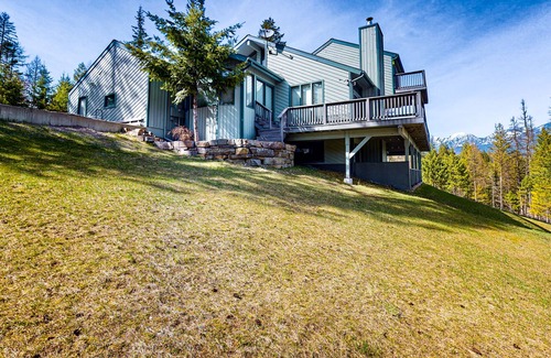Mountain- & lake-view retreat with private sauna, media room, deck & large yard | House in Kalispell