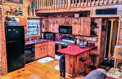 enjoy a true log-cabin retreat nestled high in the woods of murphy, nc, with all the comforts of home! kc’s kabin is a 2-bedroom, 2-bath charmer with a cozy loft with a king bed, from its open living space and warm custom-cabin décor to its beautiful woodwork, this cabin invites you to relax and reconnect with nature