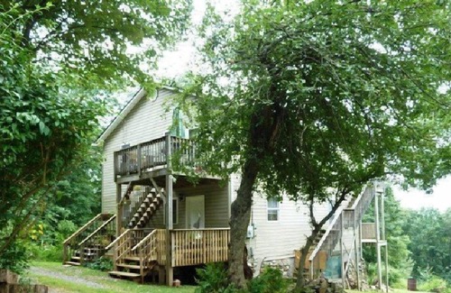 the lodging quarters consist of: living room and dinning area, with a flat screen tv, and a large front deck with beautiful sunsets Bath with tub and shower and blow dryer. Bedroom 1 have a queen size bed . Bedroom 2 has bunk beds and a single bed, board games and cards. The Kitchen is equipped with a microwave oven, toaster over, toaster, blender and coffee pot, and a gathering table with bar stools and furnished back deck. A campfire and walking trails are on the property accompanied by beautiful views. Hike the fire trail up to The Appalachian Trail (half mile away) and The Skyline Drive and Big Meadows (1 1/2 miles from the lodging).