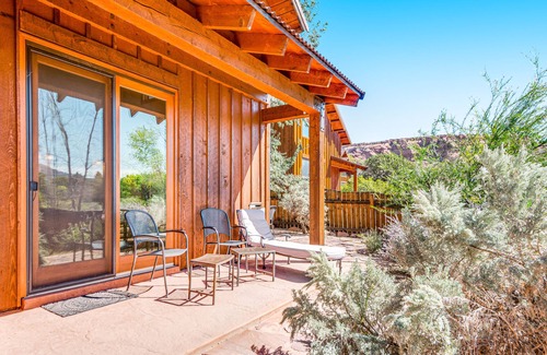 begin each morning with a cup of coffee on the patio, where you can read a good book in a lounge chair, spread out the sports section at the table, and watch the sunrise illuminate the red cliffs Use the provided WiFi to plan your daily adventures or embrace relaxation by taking a morning dip in the hot tub.