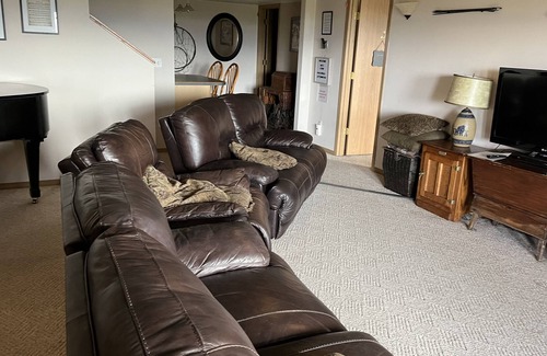 Enjoy a relaxing stay at our quiet and secluded home with breathtaking views of the Chugiak Mountain Range and Cook Inlet. This unit is one bedroom with a queen size bed with brand new mattress. The main living room is shared with other guests as well as a bathroom. it has jacuzzi tub for your use after a long day of hiking and outdoor activities. The shared kitchen is furnished with a mini fridge, microwave, Keurig, coffee machine, toaster, utensils and plates. There is also an outdoor table top grill for our guest's use..