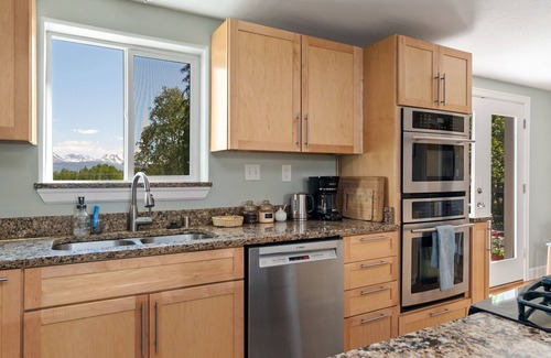 Enjoy mountain views, wildlife, and lakeside relaxation—just 10 minutes from downtown! This spacious 4BR home features a large deck overlooking a semi-private lake, where moose, sandhill cranes, and waterfowl often visit. Fully stocked kitchen, grill, desks for remote work, infant essentials, and lake toys included. Perfect for families, nature lovers, or work-from-anywhere travelers seeking both serenity and city access.