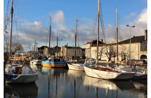 walks or bike rides on the paths bordering the oyster beds, among the birds, fallow deer We will show you our favorite trails. The beaches of Ronce Les Bains are 20 minutes by bike and are accessible by bike paths. At 300 m, observe the old sailing boats used for oyster farming. These old sailboats often go out to sea in summer and will necessarily pass through the channel in front of your house. Everything is accessible on one level. Possibility of adding a child bed for 50 €. Dining room 27 m² with sofa bed 2 places, kitchen (sink, fridge, stove, microwave, washing machine). 22 m² room with 140 cm bed + wardrobe and dresser. Shower room (shower and sink) and wc.
