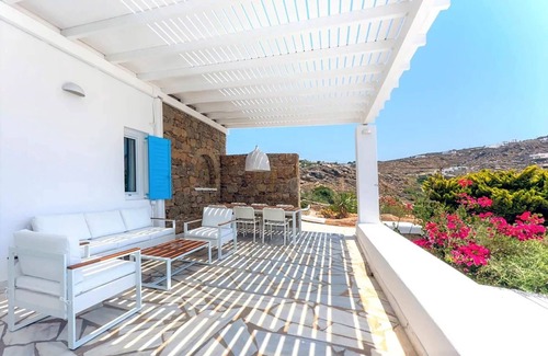 the villa is only 2 km from mykonos town and the old port, 400 m from the new port and 1 km from agios stefanos beach