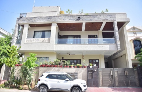 the 2500 sq feet mansion located in the posh area of jaipur vaishali nagar This architectural style is distinguished by its minimalistic design characterized by golden ratios in design and dramatic geometry creating masterpiece that evokes movement and excitement. Easy access to main roads, public transportation, restaurants, and parks yet a world away from the bustle of the Pink City. Welcome to a brand-new boutique retreat where luxury meets tranquility! Our elegantly designed suites offer unmatched comfort create the perfect escape. Enjoy lavish amenities within your apartment home like in-home technology, elegant bathrooms, and floor-to-ceiling windows for access to natural light.