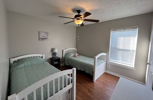 Sweet lighthouse/beachy themed house in quiet neighborhood right off I95 just 15 minutes to beaches and historic downtown. Fenced backyard with pond view, nice big kitchen fully stocked with everything you need to cook at home and save some $$$ on vacation. Newly renovated master bath has nice, big walk in shower. Pet-friendly, NO carpet. 2 Queen bedrooms and 3rd bedroom has two twin beds and a trundle.
