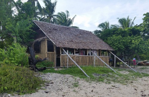 The island is in Linapacan, half way between the tourist hotspots of El Nido and Coron. We also organise private custom boat tours if you'd like to island hop your way here. Small island with about 15 fishermen families spread out on both sides. The hut is located in one of the two villages, with free roaming chickens, pigs and ducks. It is about 30m from our kitesurfing nature camp, all tents. Very peaceful setting on a beautiful beach. The area has 52 mostly deserted paradise beach islands, and excellent snorkeling just off shore in the clearest waters in the world. You can explore the area with a local boat day trip, such as the millions year old caves, a Spanish Fortress, two shipwrecks for diving, cliff diving into the ocean, or some of the jungle trails we made. The locals can cook for you or you can join us in our nature camp, as we all cook communally like a family..