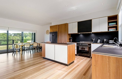 the property includes a combustible wood fire heater, an air conditioning split system, and ceiling fans in every room It also has a fully equipped kitchen with a Smeg pod coffee machine and a washer. The property offers rural views and off-street parking, as well as a BBQ and a smart 55-inch TV with all apps, including Netflix, Stan, Disney, Binge, and Kayo. Additionally, the bathroom has a Sonos system and a Nobo Electric wall panel heater. Wifi is also included.