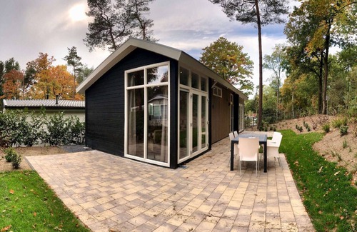 This beautifully decorated chalet in Hoenderloo offers the perfect blend of nature and convenience. Just steps from a sprawling forest and located near the entrance of a spacious holiday park, it’s ideal for those who want to explore and unwind. The interior is warm and inviting, with large windows that bring the outdoors in, an open-plan kitchen, and a cozy living area. Whether you're sipping coffee by the garden doors or enjoying family meals at the dining table, the setting is pure peace with a stylish twist.