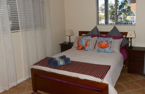 Base your beach holiday from this large, affordable, open-plan apartment on the lower level of our two-storey home. Stroll to Dunwich's beaches, cafes, galleries, & shops, or drive a short 15 minutes to surf or watch whales. With plenty of living space both inside and out, and a hammock and BBQ on the spacious recycled timber deck, you’ll have all you need for your island getaway.