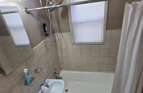 upstairs are 3 spacious bedrooms with queen size beds and another full size bathroom This bathroom has a claw tub with shower. There is a TV with Roku streamer in 2 of the bedrooms.