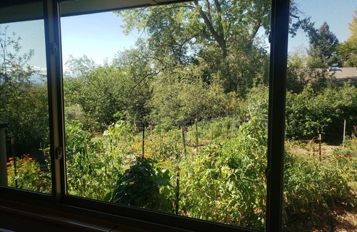 on the west side of the house is a large vegetable garden that is maintained by a local volunteer group that provides fresh vegetables for soup kitchens