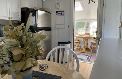nearby inflatable water-park , shops; 05 mile to the Music Room- live entertainment. Much to do nearby.. golf courses, miniature golf, Ryans bowling alley/axe throwing/corn hole/arcade and lounge, Pirate museum, walking trails, bike trails and kayaking . Our home has 2 Bedrooms, 1 bathroom, A/C units in each bedroom and living room. All linens, blankets, bath towels, beach towels included. Washer and dryer, phone charger, cable & high speed WiFi internet with 58” Smart TV. Fireplace in living room. Newly updated fully equipped kitchen including new modern appliances, dishes, cookware, glasses; cabinets, Keurig coffee maker which also makes iced coffee, granite counter tops and beautiful New flooring installed( Oct 2022) throughout the entire house . Renovated kitchen opens to adjoining bright, beautiful sun-room ,with futon, additional kitchen table, lots of chairs, wicker love seat and 2 wicker chairs which all overlook spacious backyard. Great for entertaining! Perfect for the kids to let loose. We have 4 bicycles for you to use... 2 adult bicycles and 2 younger adult bicycles and a bike rack for your vehicle, lawn games, corn hole, badminton, beach umbrella and lots of beach chairs in shed in the backyard . Relax on large, spacious patio with custom fire-pit along with outdoor grill and chill out in hammock in backyard. 4 parking spots in driveway. Finish it off in a spacious outdoor shower and you will have your perfect Cape Cod getaway. Our home has everything you will need for your Cape Cod vacation ..