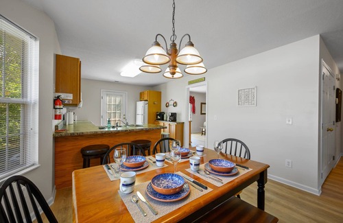 Located within steps of the river........this property offers two King-size bedrooms and two full bathrooms. Each bedroom features a flat-panel television with Xfinity cable and Wifi. The main room features a well-stocked kitchen with a full-size refrigerator, dishwasher, microwave, and a dining table that can seat up to 6 guests plus 2 more at the breakfast bar. You also have access to a private washer & dryer plus central heat and air to make your stay more convenient and enjoyable. The open family room offers additional sleeping with a queen futon sofa plus a twin sleeper chair. The large rear deck area is perfect for some relaxation and gathering with friends. Just a short walk away is a multi-table picnic pavilion near the river's edge with lots of open, greenscape to enjoy the outdoors. You will find generous, flat, covered parking underneath the pedestal home.