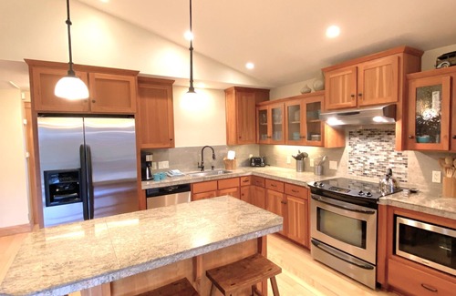 The Neskowin Villa is a welcoming top notch Neskowin Village home, including all of the furniture, dishes, beds, well, everything. It's like being at home but having the beach within walking distance. The upper level has an open floor plan for family and friends to gather and share old and new memories, play games or enjoy a meal prepared in the fully stocked high end kitchen. There is WiFi, 2 TVs and 1 DVD player available for use. Your pet companion is also welcome with a per pet fee. There is a large wrap around deck with a propane BBQ and a sizable outdoor dining table with plenty of seating. You will find bicycles and helmets located in the garage for exploring the village or stroll 2 blocks to beach access. The backyard has a large picnic table long with a fire pit so bring your wood and ingredients to make smores. The 1800 sq ft house is on a little used side road, no traffic. Pull your clubs down the road to the Neskowin Golf Course.