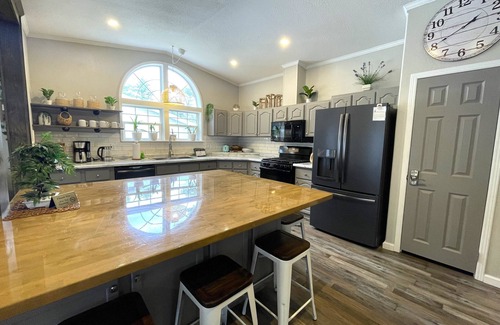 at the end of the day, when you are done exploring all the different attractions that the dells has to offer, come back to the home's fully stocked kitchen to cook up a feast, play a fun board game, or rest and relax next to the gas fireplace for a quiet and cozy evening so you can be ready for more adventure the next day