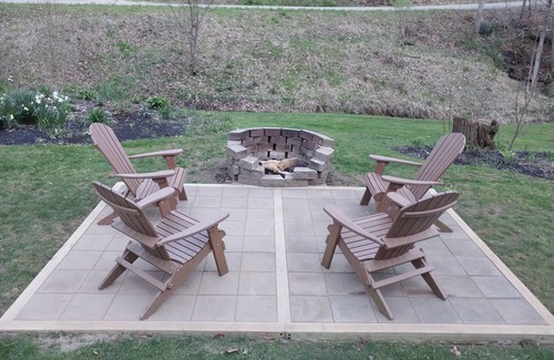 feel like grilling out? we have provided a gas grill! there is even a picnic shelter to sit and enjoy your fresh grilled goods down by the creek! afterwards, relax by the fire and have some s'mores! we have a 7x10 concrete block patio by the fire pit!