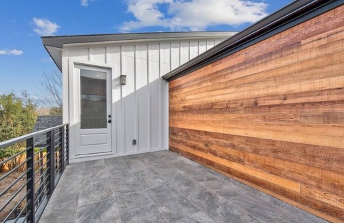 This new construction, $2,500,000 home was completed in February and we are renting it on VRBO until the realty market improves for expensive home sales. It rests on a large lot in a quiet, gentrified south Austin neighborhood. 10 minutes from Zilker Park and Barton Springs! Great living spaces, multiple covered patios, gourmet kitchen, outdoor gas BBQ, heated 14'x22' pool, 3000 sqft floorspace. Giant soaker tubs in each of the two master suites with private patios, one upstairs and one on ground floor. Separate upstairs & downstairs living areas with 55" TVs for adults/kids. 3 Bedroom TVs. Fenced front & back yards, suitable for pets or kids. House backs to greenspace creek for privacy and birdwatching. Come and enjoy!.