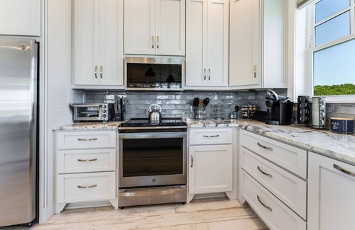 there is so much to love about this beach home inside and out including the spacious inside with plenty of seating, coastal decor, high-end finishes, new appliances, fully-stocked kitchen, spacious bathrooms, open-concept with an abundance of natural light, beautiful gulf views and access to a large deck on each floor! on the ground level you can take a dip in the sparking private pool and enjoy the beautiful pool area or seek some shade in the outside entertainment area under the home and watch a game on the flat screen tv where this is also a full-size refrigerator for easy access to beverages and beach day snacks!