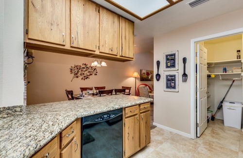 You will love your stay in this comfortable, recently upgraded one level home located in the beautiful Alta Mesa Golf Club community. As you enter the property you are greeted by a private courtyard. Upon opening the front door you will be amazed at the open and spacious layout of this home especially the vaulted ceilings in the living room. The property features granite counter tops and a pass thru window to the patio in the kitchen. French door access to the patio where you can enjoy your morning breakfast or quiet moments. The spacious master bedroom has a king bed, French door access to the patio, large closet spaces, double sinks, granite countertops and vanity. The guest bedrooms and guest bathroom are on the opposite side of the master providing privacy.