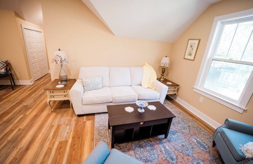Blocks from downtown Tifton, close to everything and easy to find. ABAC is about a mile away. New Restaurants and shopping within blocks. This brand new apartment is part of a four unit house that was lovingly rebuilt to include many victorian features such as doors and trim but all the modern conveniences such as new kitchen and baths. The split bedroom plan allows for privacy. The bedrooms each have a large operational window with screens to allow for breezes during temperate weather. Ample closet space for your clothes. The living area is comfy with sofa, chairs and TV. The 1/2 bath in the living are means you will not be waiting on someone in the shower. Full sized appliances in the kitchen for inspirational cooking. Cozy alcoves and victorian stained glass window give a homey feel. This is a second floor unit but once in the apartment there are no stairs. The building does not have an elevator. There is a ramp from the parking area to facilitate easy access to the 1st floor..