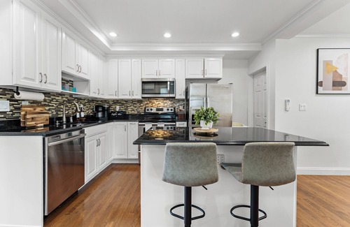 guests enjoy full access to this elegant home via a smart lock keypad for easy, secure entry