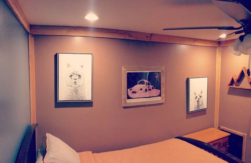 when you're ready to rest up, the bedroom has a brand new beautyrest black queen mattress (it feels like heaven) and a twin bunk bed to comfortably sleep up to 4