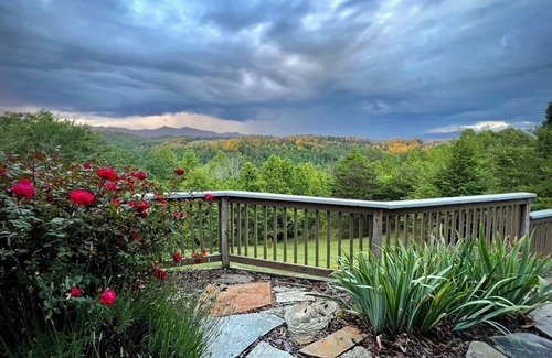 "Wow!" is the reaction when guests see the million dollar unobstructed view of the Blue Ridge mountains from yourprivate patio! Easily drive to eclectic Asheville (24 min.), enjoy an award winning bakery in charming Weaverville (10 min.)This peaceful retreat is perfect for solo adventurers or couples, artists, cloud watchers, inspiration & solace seekers..