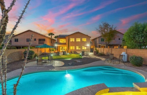 welcome to the cozy saguaro 🌵 this beautiful home in phoenix is the perfect place for family gatherings, work retreats, or relaxing getaway With unobstructed views of South Mountain, the outdoor space is perfect with a resort-style heated pool & spa, putting green, and fire pit. Enjoy full access to 2 game rooms with pool table, arcade, and board games! Just a short drive from fine dining, shops, PHX Airport, golfing, and top attractions, this home offers the ultimate in comfort and relaxation.