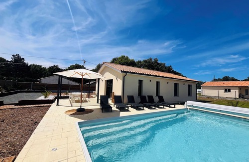 New house of 100m2 close to the ocean with garden of 1300M2 fully enclosed to ensure tranquility. Private pool, covered.