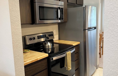 remodeled, sunny, centrally located, 2 br/1 ba townhome Near the Airport, Lake, Park, Downtown, Stores, & Trails. Stress-free self-check in/out. Wheel two guest kayaks on carts provided for a 5-minute walk to Jewel Lake. The balcony boasts sunrises with a stunning mountain backdrop. The unit has a gas grill, high-speed internet, a dedicated workspace, 65” Smart TV in the living area, and both bedrooms with Netflix, Prime, and Hulu. Wash/Dry, Covered off-street parking.