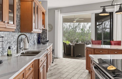 head outside for the best in outdoor living Enjoy the lanai with an outdoor kitchen while overlooking the large pool and views of the glistening canal waters.
