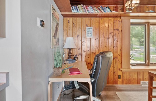 in the summer, spend your days swimming, kayaking, fishing, or simply relaxing on the sandy beach, taking in the serene views A pontoon boat is available for rent. In winter, you can enjoy the best downhill skiing and tubing in the area at nearby Nordic Mountain. You can also go ice fishing, snowshoeing, cross-country skiing, or take advantage of snow mobile trails.