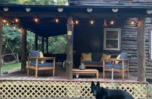welcome to a truly unique escape in owensboro, where the charm of a log cabin meets the tranquility of a lakeside retreat This exceptional short-term rental, set amidst 10 acres of pristine wooded forest, offers an experience like no other. The stone fireplace warms your heart as you step inside, and the loft-style design exudes rustic elegance. It's a haven of peace and seclusion, the perfect respite from the hustle and bustle of everyday life.