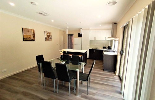 My Place in Albury is a gorgeous, modern, new home for you to enjoy. The property features 3 bedrooms all with Queen beds & sleeps up to 6 people. The master room has a walk in robe & ensuite & the other bedrooms have built in wardrobes. The kitchen is fully equipped, lounge with a smart TV, dining room and charming outside patio area. Its a short 5 minute drive to town & local attractions. Located nicely to Beechworth, Rutherglen, Hume Weir, Snowfields and surrounds..