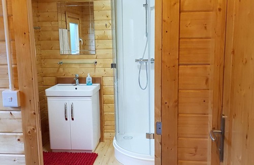 the log cabin has a warm and comfortable lounge with dining table Kitchen with electric induction hob, electric oven, fridge freezer. Two bedrooms one double bed room and one twin bedroom being full size single beds. Shower room with toilet and wash hand basin. Hall with hanging for outdoor clothes and boots..