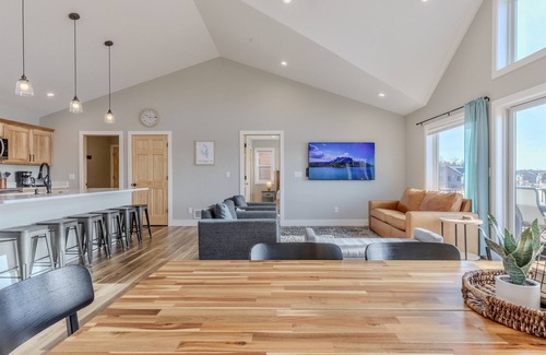 there's ample space for you and your crew in this 3,000 sq ft 6 bedroom, 3 bathroom home that also includes an outdoor deck and patio with dining/seating, a fire pit, as well as two kayaks and a blow-up paddle board to enjoy your time on Beach Lake, a 5-acre man made catch-and-release lake. Should you choose to spend some time indoors, you are welcome to use all of the offered entertainment that includes plenty of board games, an arcade game, shuffle board, as well as a smart TV in both the upstairs and downstairs living spaces.