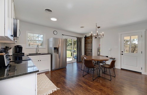 New SPA!! Gorgeous updated House & Guest House on 1/2 acre in downtown Dripping Springs! Walk to coffee shops, restaurants, breweries, wineries, & famous downtown Mercer Street! House is a 2 beds (1 king, 1 queen), 1 bath (tub/shower) & Guest House is 1 bed (1 king, twin bunk beds), 1 bath (shower). All of the amenities of home, including a fully furnished kitchen, games, a massive DVD library, wifi and YouTube TV, outdoor grill, & plenty of parking right in town. Only a short 30 min from the Austin Airport, you can get to Fredericksburg, San Antonio, and Marble Falls within an hour.