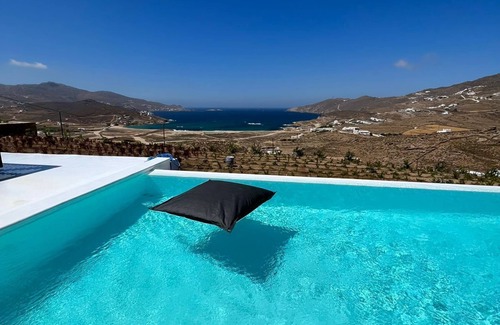 the villa has 5 deluxe en-suite bedrooms and 1 master room with a private outdoor pool for guests to enjoy every moment of their mykonos getaway in absolute zen The villa is blessed with a fantastic location, located in the area of Ftelia, close to Ftelia Beach and Alemagou beach bar-restaurant. The uninterrupted views from the villa's terraces to the beach will amaze you.