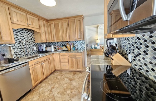 kitchen: fully loaded with full stocked coffee bar (complimentary), lots of cooking appliances and utensils including a ninja blender, ninja airfryer, crockpot, etc.. We even include clingwrap, aluminum foil, ziploc bags. Basic cleaning supplies also included. we stock this house like we live here!