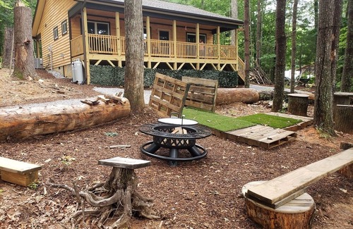 A private oasis nestled in the woods with 2 wide porches perfect for morning coffee, bird watching, quiet reading and utter relaxation. Fully equipped kitchen, 55 inch Smart TV, clean comfortable beds ..