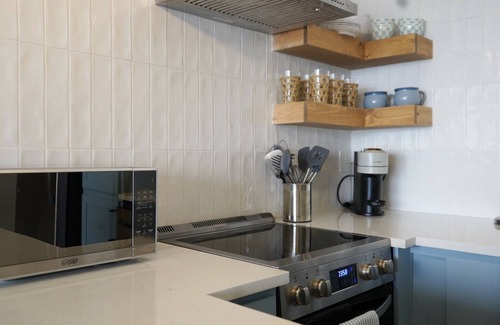→ enjoy cooking in the fully equipped kitchen with modern appliances, then kick back in the open-concept living room with cozy seating, an electric fireplace, and a large smart tv
