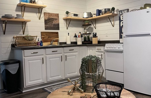 Recently renovated Studio Apartment on the Muskegon River. King Bed, sleeper sofa, laundry in unit, fully stocked kitchen, private patio with grill. Adorably decorated! Available for nightly, weekly or monthly rentals.