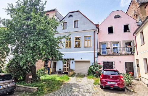 villa vrbatův dvůr is a historical apartment block in broumov, czech republic, featuring internet wifi and a prime location in the town center Just 50 meters from public parking, this three-story vacation rental offers convenient access to shops, restaurants, cafes, and public transportation within a short walk.