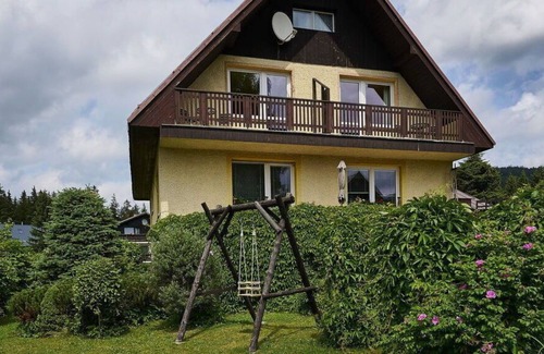 2-family house 700 m a.s.l.. 300 m from the centre of Harrachov, 28 km from the centre of Jablonec nad Nisou, 1.5 km from the skiing area. Private: property 300 m2, lawn and trees, swimming pool (3,6 m diameter, depth 70 cm, seasonal availability: 01.Jun. - 30.Sep.). Patio, garden furniture, barbecue, children's playground (swing, sandbox), parking (for 3 cars) on the premises. Shop, supermarket 400 m, restaurant 300 m, grass beach 25 km, outdoor swimming pool 1.5 km, indoor swimming pool 1.5 km. Golf course (18 hole) 39 km, tennis 2 km, indoor tennis centre 3 km, ski lift 300 m, chair lift 1.5 km, slopes 300 m, ski school 1.5 km, children's ski school 1.5 km, cross country ski track, children's playground 300 m. Nearby attractions: Mumlava vodopád 2.5 km, Kořenov 8 km, Jizerka 15 km, Jablonec nad Nisou 29 km, Liberec, Ještěd 40 km, Termy Cieplickie (Pl) 30 km. Well-known ski regions can easily be reached: Harrachov 1.5 km, Příchovice 10 km, Rokytnice nad Jizerou 18 km. Hiking paths: Western City(Pl) 40 km, Karpacz Wang,Park miniatury Kowary (Pl) 44 km, Giganteria Piechowice 23km, Dinopark(Pl) 15 km. Please note: the owner lives in the same residence. Owner lives in separate semi-detached house.