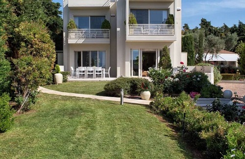 Beautiful, comfortable residence "The Marble Resort", 3 storeys, semi-detached, built in 2008. 3 apartments in the residence. In the district of Drosia 9.4 km from the centre of Chalkida, in a quiet, sunny position, 30 m from the sea, 30 m from the beach, road to cross. For shared use: large, well-kept garden 3'000 m2 with flowers and trees, lawn for sunbathing, swimming pool angular (84 m2, depth 60 - 260 cm, seasonal availability: 01.Jan. - 31.Dec.) with internal staircase. Shower/WC in the pool area, outdoor shower, barbecue. Linen change 2 times per week. Towel change 2 times per week. Room cleaning 2 times per week. Parking (for 7 cars) at the house. Grocery 2.9 km, supermarket 2.9 km, restaurant 2.9 km, bakery 2.9 km, café 2.9 km, sandy beach "Alykes" 2.6 km pebble beach "Drosia" 30 m, thermal baths "Edipsos" 115 km. Tennis 10.1 km, riding stable 15 km. Nearby attractions: Archaeological Museum of Chalkida 8.6 km, Karababa Castle 7.2 km, Monument of National Resistance 9.4 km, Waterpark Atlantis 3 km, Archaeological Museum of Delphi 131 km, Cultural Museum of Chalkida 8.1 km. Well-known ski regions can easily be reached: Arachova 120 km. Please note: car recommended. Suitable for families, baby equipment on request (included). Groups of teenagers on request only. Additional accommodations can be booked. Property ref. GR3400.3.1 is situated on the same property. The holiday properties may differ in living space, floorplan, equipment and furnishing.