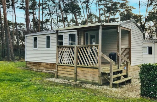 "4 persoons", 3-room mobile home 30 m2 Practical furnishings: entrance hall with separate WC. Living/dining room with dining table and flat screen. Exit to the terrace. 1 double bedroom with 1 double bed. 1 double bedroom with 2 beds. Open kitchen (4 gas rings, kettle, microwave, electric coffee machine). Shower. Heating. Terrace. Terrace furniture. Facilities: Internet (WiFi, free). Reserved parking (1 car) at the house. Please note: non-smoking house. Smoke alarm..