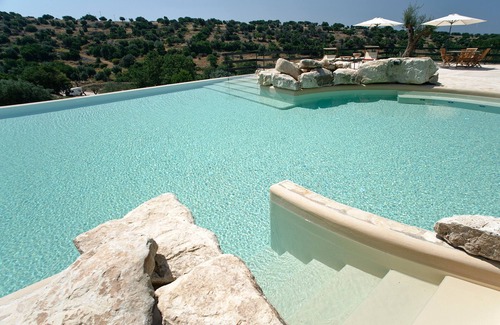 An exclusive country estate, dating from the last century, situated in the middle of an 18-hectare nature park, surrounded by olive groves and ancient trees and framed by typical low stone walls lining the paths. Its three old country houses have been recently and expertly renovated and converted into seven elegant and comfortable apartments, all individually decorated with tasteful furnishings and fittings. Each apartment has its own separate terrace. All guests in the apartments can also use the original swimming pool surrounded by a large sun terrace in the beautiful garden (all taken care of by a discreet janitor and gardener who lives on site). The estate is at the heart of the province of Ragusa, listed as UNESCO cultural heritage. It is an excellent starting point for exploring the baroque towns of Scicli, Modica, Noto and Ragusa-Ibla or the rural jewels of Cava d’Ispica, Oasi di Vendicari and Kamarina.